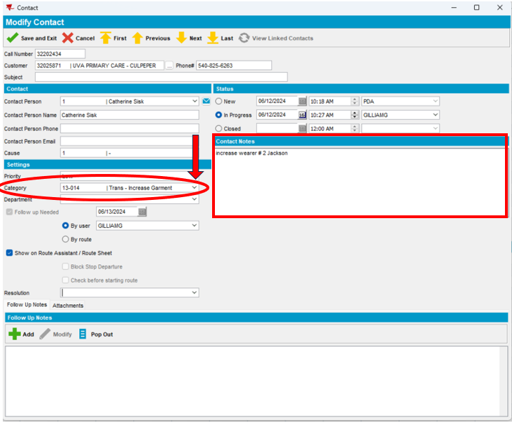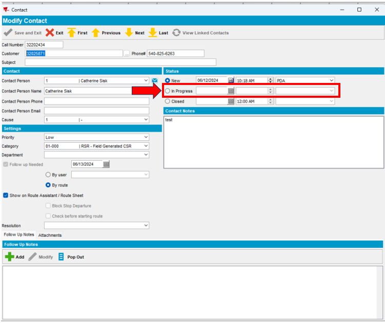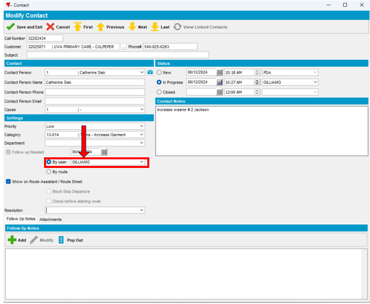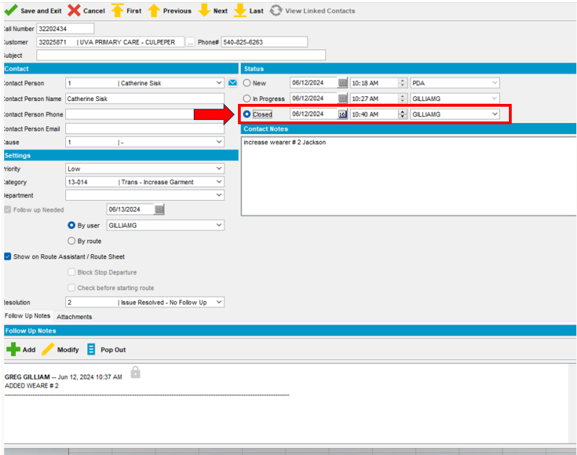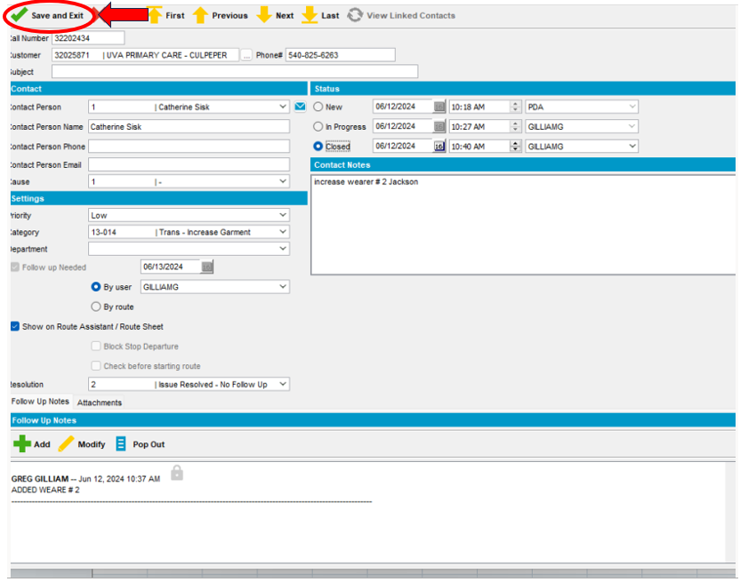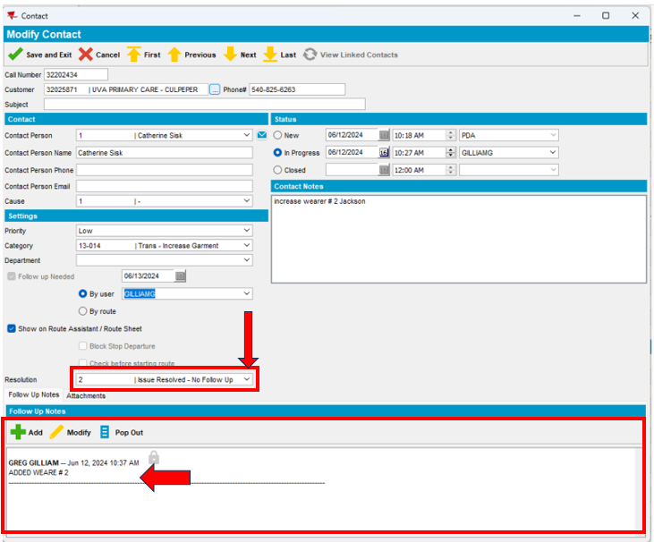 - Update the follow up notes stating the actions that were completed by the Service Manager