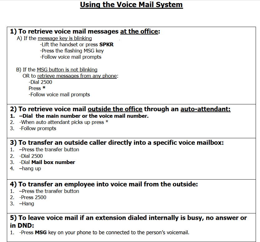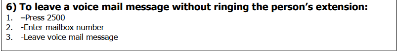 4. Voice Mail prompt will ask for your password – this is your extension number followed by #.