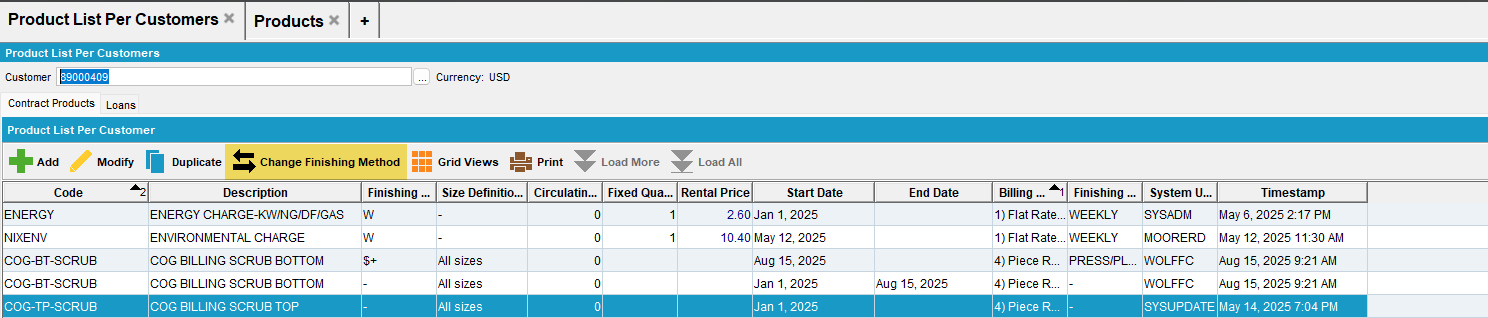 If it is, look up the customer on 'Product List per Customer' and click the product you'd like to change the finishing method for. Then hit the 'Change Finishing Method' button.