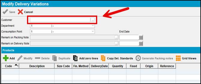 1. Enter the customer number or click the  icon to do a customer search