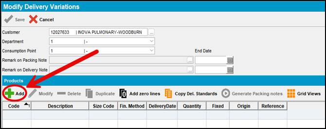 1. Select the +Add button to begin entering your Delivery Variations.