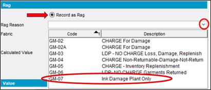 1. Select the dropdown and click GM-07 Ink Damage Plant Only