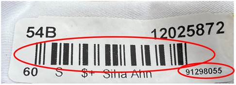 1. Scan the barcode on the garment or enter the eight-digit number located on the bottom right of the identification sticker