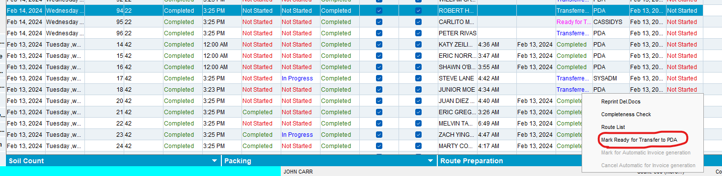 4. Go to ABS Route Status Control and find the next delivery day for the route, then under Route Preparation mark as Ready for Re-Transfer.