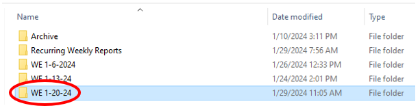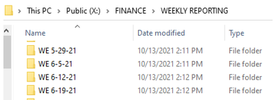 - Go into the Public folder on your PC: This PC > Public > Finance > Weekly Reporting