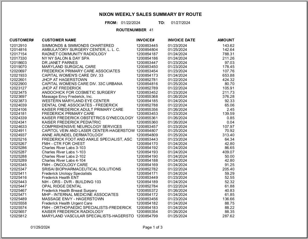 Note: You can view multiple weeks at one time for a selected route. It is important that the BEGDATE starts with Monday and ENDDATE ends with Saturday. All credits are posted in ABS at the end of the week, so for route data accuracy, week ending dates must include Saturday