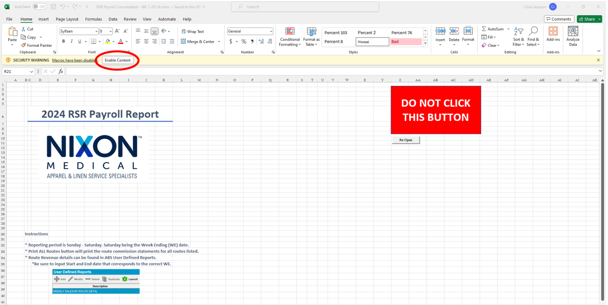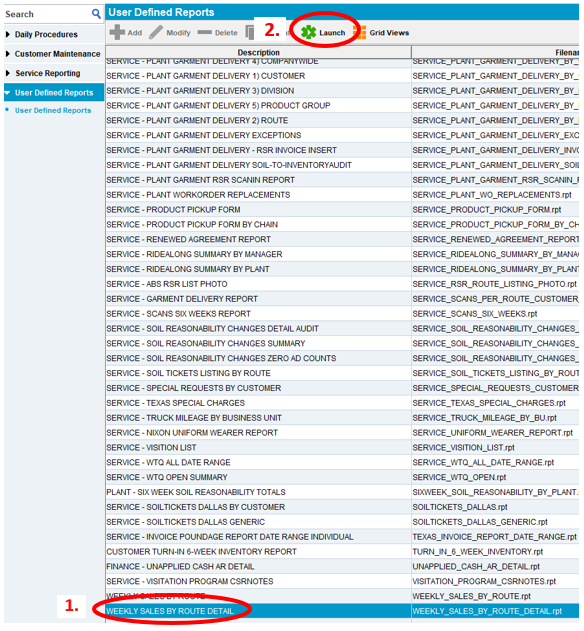 - In ABS, navigate to User Define Reports – Weekly Sales by Route Detail