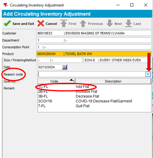 - Select the dropdown next to Reason Code and select Add Flat