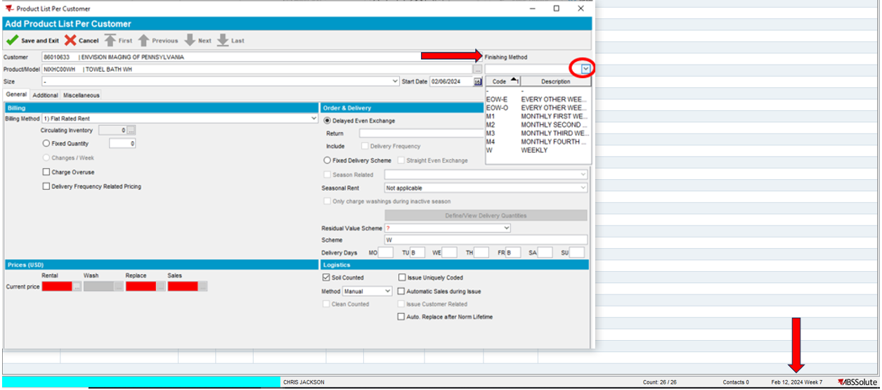 - Go to ABS: Customer Maintenance – Product Lists Per Customer
