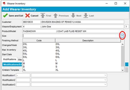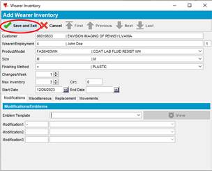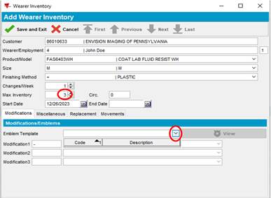 - Enter the total number of garments needed for the new wearer in the Max Inventory field.