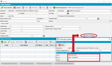 - Embroidery Lettering – only enter if the new wearer requires a name emblem or direct embroidery. Company emblems (logos) do not require this field to be populated.