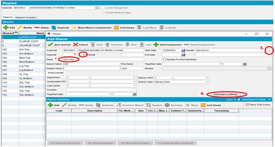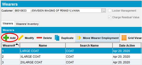 - Adding Garments are performed using the Wearer icon under Customer Maintenance