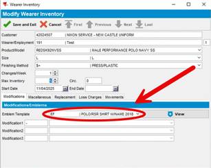 Note: Before adding a garment to a Wearer, ensure that the product is in the Product List Per Customer listing.