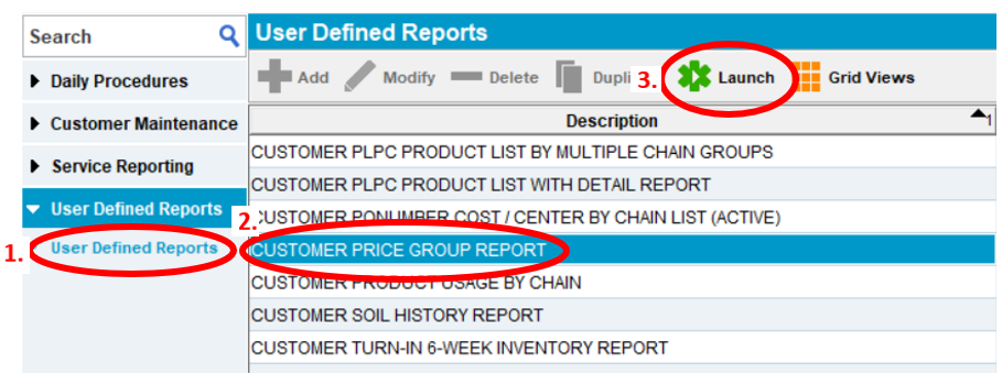 - Select – CUSTOMER PRICE GROUP REPORT
