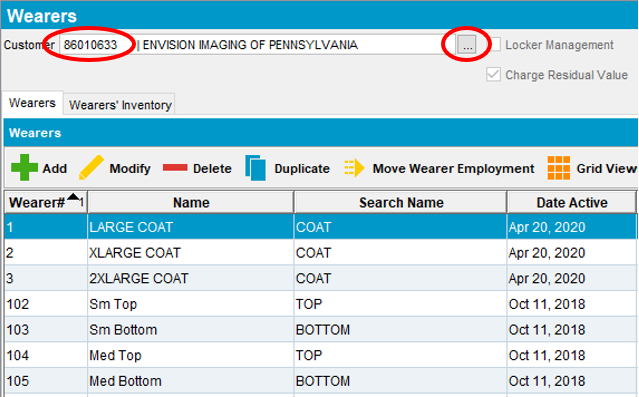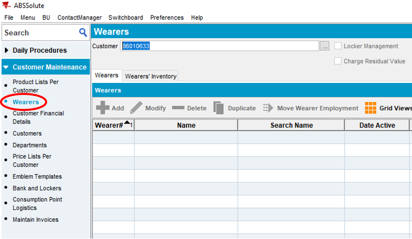 - In ABS, navigate to Customer Maintenance - Wearers