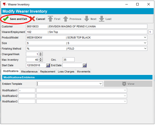 - Select the product you would like to increase under Wearer Inventory and click Modify