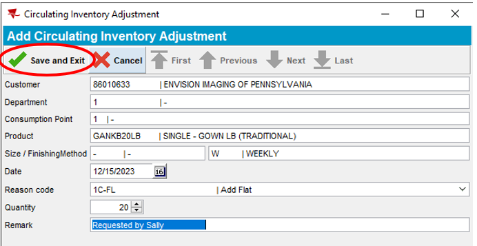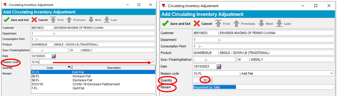 - Select a Reason Code from the dropdown items and enter the Quantity (Circulating Inventory) adjustment. Note: To decrease, enter a negative circulating number.