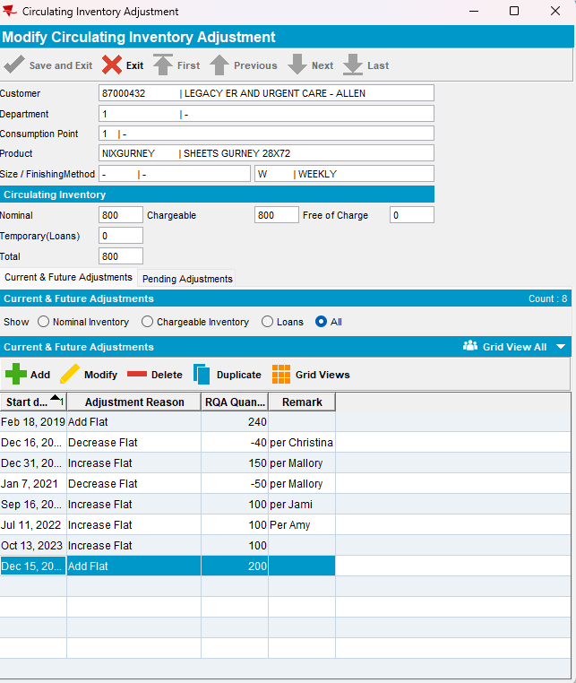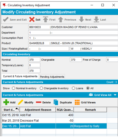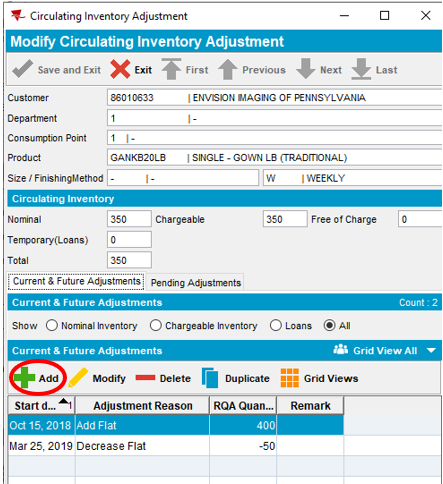 - Increases and Decreases of Flat Goods are performed using the Product List Per Customer icon