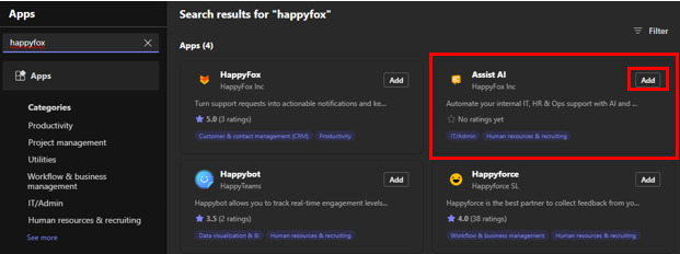 This article describes how to install Happyfox Assist AI in Microsoft Teams.