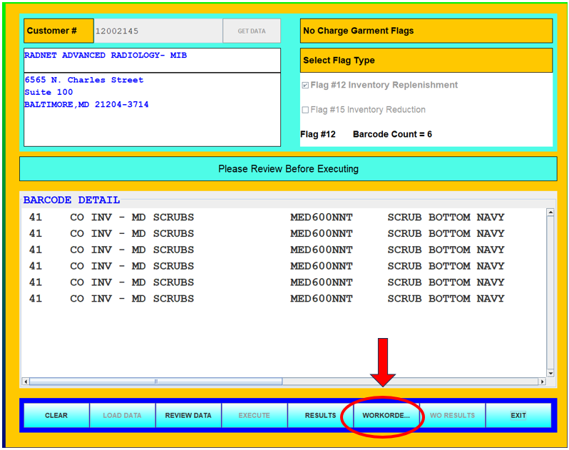 22. Select Workorders to generate a work order for the scrubs you just removed above and submit to the Stockroom.
