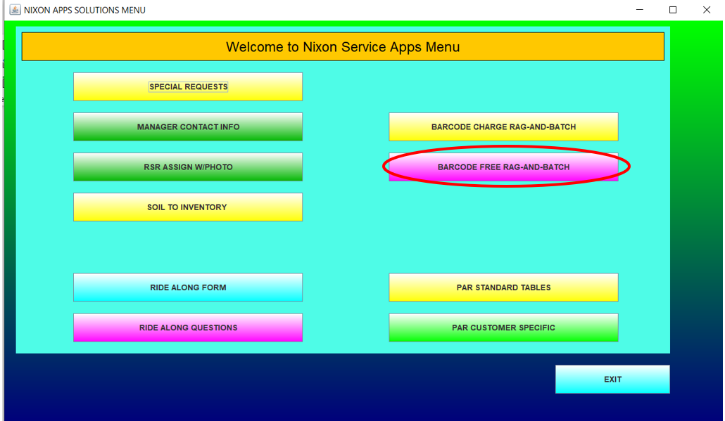 Location in the Nixon App: Service Menu / ”Barcode Free Rag-and Batch”
