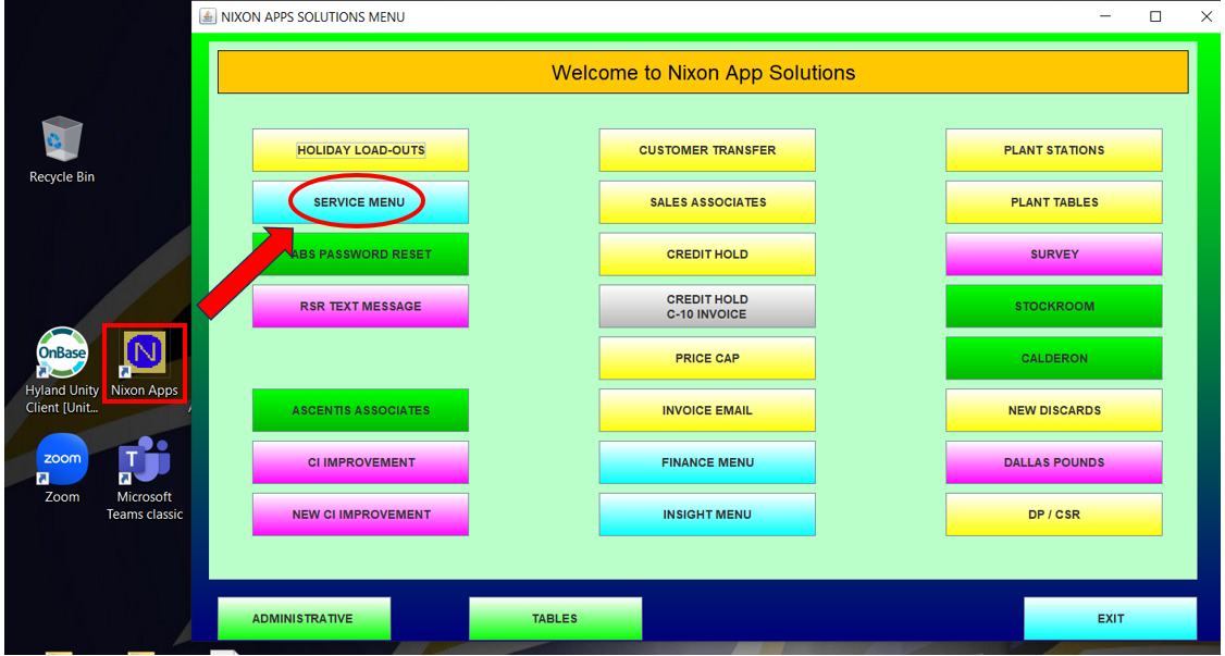13. Next, go into the Nixon Apps and select Service Menu