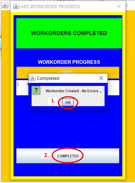 24. After the ABS Workorder Progress is complete, click OK and Completed.