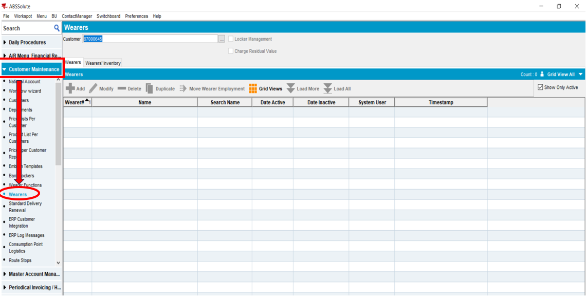- In ABS, navigate to Customer Maintenance - Wearers