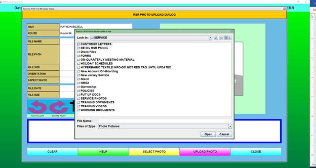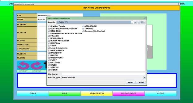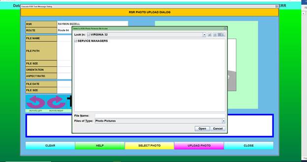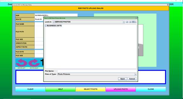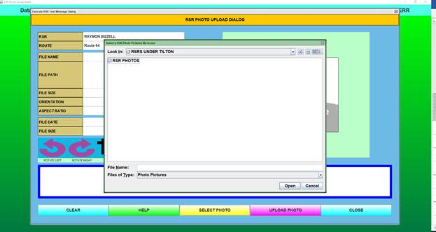 Select “Upload RSR Photo.” (Assumes you have previously saved a photograph of the RSR to the public drive. See the “How to Photo” button for instructions. Refer to Appendix pages.)