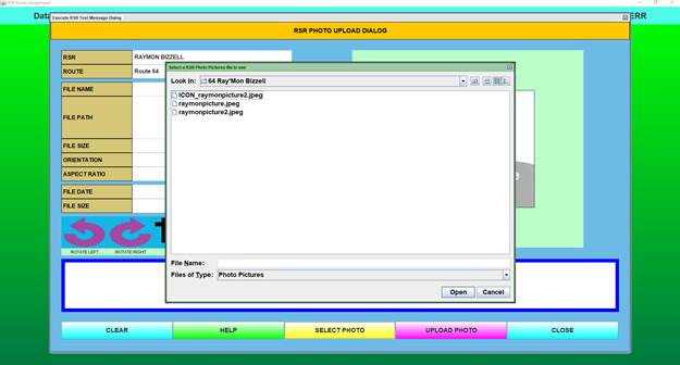 Step 7b: The RSR Photo Upload Dialog box appears. Select the “Select Photo” button.