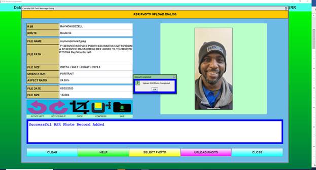 The Upload RSR photo completed dialogue box will appear. Confirm “OK”. Your photo is successfully saved to the database.