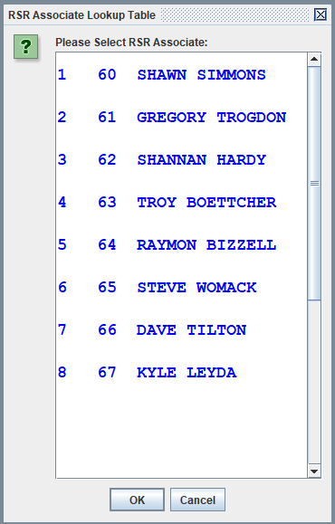 Drop down list of RSRs when Select RSR button is activated: